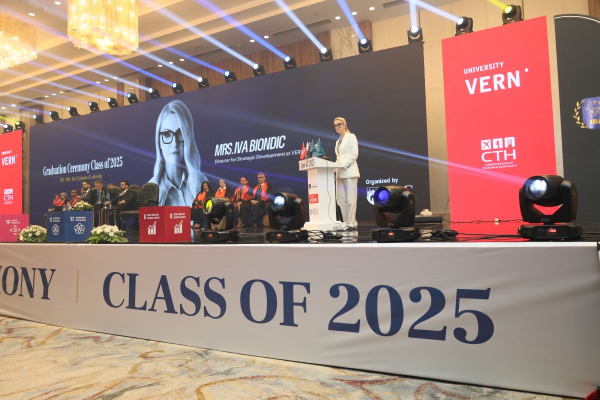 Ms. Iva Biondić, Director of Strategic Development; Ms. Ana Ivanišević Rilak from the Office for International Cooperation; and Ms. Nataša Jeličić, Project Manager of the #EducationMeetsBusiness project, represented VERN' at the third graduation ceremony of the International MBA & DBA programs organized by the ECC Group.
